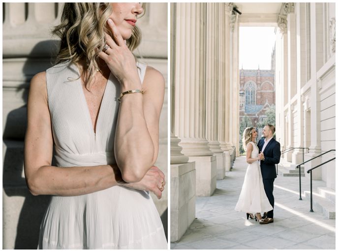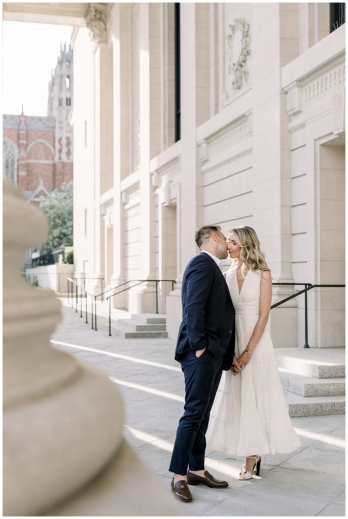 When deciding where to do Pepie and Nick’s engagement session, it was a no brainer. They were supposed to have their Schwarzman Center wedding at Yale University this Summer but due to a change in policy, they had to rearrange the entire thing and find a new venue. Accordingly, we thought that doing their engagement session at the Schwarzman Center in New Haven would be perfect. Nick is a doctor at Yale, so these grounds are the grounds that Pepie and Nick fell in love and got to know one another.